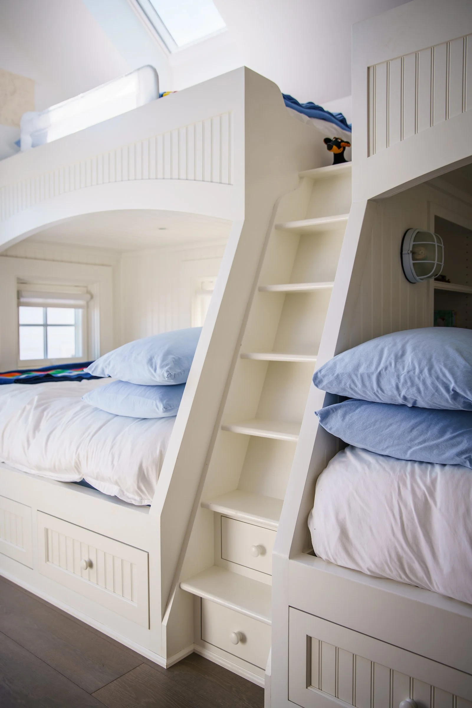 Upstairs, a whimsical bunk room designed for younger residents blends imagination with thoughtful function, featuring custom cubby storage tailored for effortless organization. The result is a home where craftsmanship, design, and livability come together with understated sophistication.